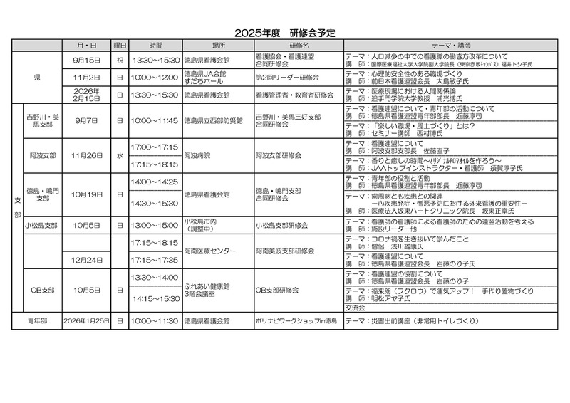 令和7年度徳島県看護連盟OB支部研修会開催について